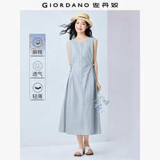欧美淑女吊带露背棉麻U型领绑带宽松款连衣裙Slip-fitting dress