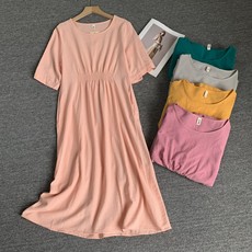 日系文艺范棉麻中袖连衣裙女夏季气质a字收腰显瘦中长款纯色长裙