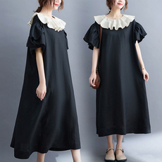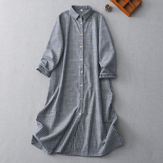 韩国chic大码棉麻连衣裙大码胖长款打底衬衫显瘦复古宽松显瘦裙子