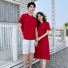 现货【鸢梦香影】复古红色改良版交领连衣裙女夏季收腰不规则长裙
