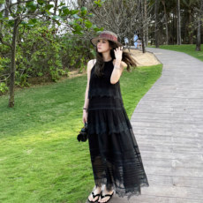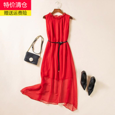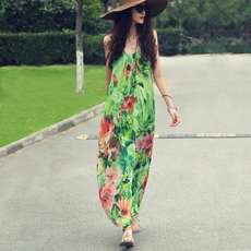 夏新款超仙时尚旅游度假沙滩裙真丝桑蚕丝连衣裙收腰显瘦大摆长裙