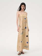 现货 美式性感 1OO%真丝双绉度假风细肩带重工打揽收腰印花连衣裙