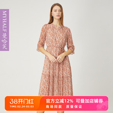 【奥莱】MAXRIENY复古真丝碎花连衣裙桑蚕丝裙子