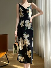 设计感复古时尚印花桑蚕丝连衣裙女2024夏季新款显瘦真丝中长裙