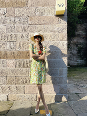 亏本清仓!夏日1OO%真丝双绉法式飞飞袖印花连衣裙-内衬也是真丝