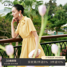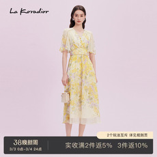 La koradior拉珂蒂夏季新款100桑蚕丝印花浪漫真丝丝绸连衣裙女