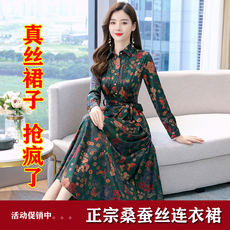 杭州贵夫人真丝桑蚕丝连衣裙2025春秋新款高端大牌中年妈妈长裙子