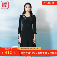 蓝大原创女装国风贵气重工刺绣立领真丝香云纱黑色无袖连衣裙5477
