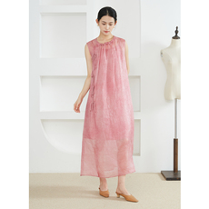 高定 欧根纱提花真丝无袖连衣裙100%桑蚕丝宽松长裙a字裙背心裙夏