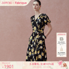 Fabrique法式优雅真丝桑蚕丝亚麻印花通勤吊带无袖连衣裙夏季