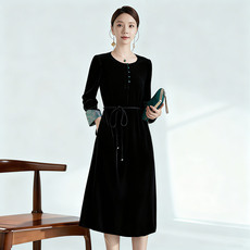 【真丝泡泡绒】美丽客栈秋冬新款高级感长袖圆领连衣裙女大码女装