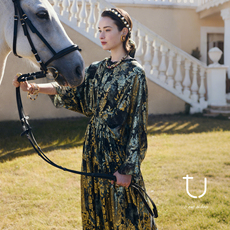 TU星河夜舞 宫廷风佩斯利提花真丝连衣裙26年春季新款大摆长裙子