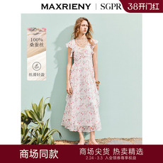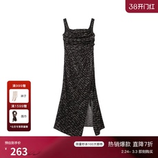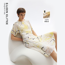 TU女装 波嬉风100真丝法式印花连衣裙桑蚕丝琥珀流光度假长裙