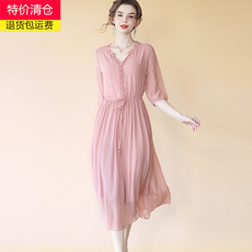 新款双绉真丝连衣裙女甜美桑蚕丝飘逸透气休闲碎花气质裙子夏季