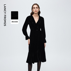 2026新款真丝全丝绒高端高贵洋气复古金丝绒女法式春秋品牌连衣裙