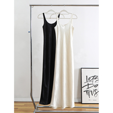 文艺脱俗!自带清凉!奶白色真丝干丝dry silk圆领茧型背心连衣裙