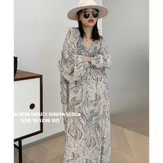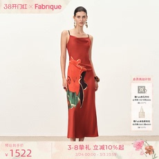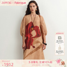 Fabrique鸢尾印花桑蚕丝亚麻长袍连衣裙春夏女装宽松真丝长裙