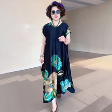 真丝连衣裙女2025新款夏装贵夫人中年妈妈桑蚕丝大码宽松显瘦长裙