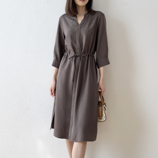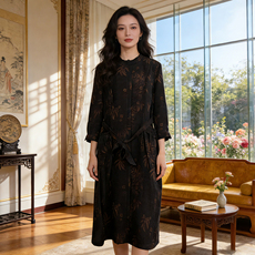 【清】莨西子新中式国风桑蚕真丝改良旗袍裙子女立领收腰连衣裙