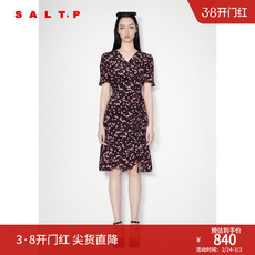 【真丝】SALT.P可颜100%桑蚕丝v领抽褶印花碎花裙连衣裙夏