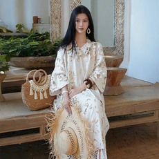 澄渔高定「栖鎏听风」新中式原胚真丝亚麻烫金刺绣亮片流苏连衣裙