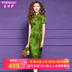 渔牌女装连衣裙女夏季2024新款真丝弹力古典优雅改良旗袍FGGB0068