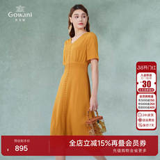 落日余晖!桑蚕丝晕染印花短袖法式真丝连衣裙时尚修身长裙显瘦女