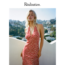 真丝双绉桑蚕丝法式优雅红色系印花斜裁连衣裙吊带裙度假风裙子