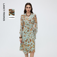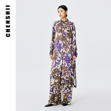CHENSHII2026春季新款长袖印花真丝衬衫连衣裙女气质长裙