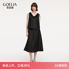 35姆米重缎真丝!圆领V领两穿!桑蚕丝提花缎面连衣裙A字背心长裙
