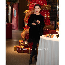 阔太太重工钉珠真丝绒连衣裙秋冬新款大码遮肚显瘦气质妈妈裙子