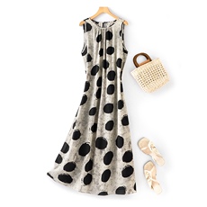 气场强大~欧美风背心连衣裙女时尚通勤宽松版水墨大波点连身裙