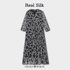 【奥莱】MAXRIENY复古真丝碎花连衣裙桑蚕丝裙子