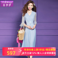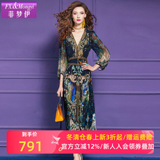 菲梦伊100桑蚕丝印花连衣裙女夏季波嬉风高端奢华双绉真丝长裙子