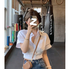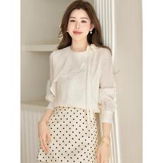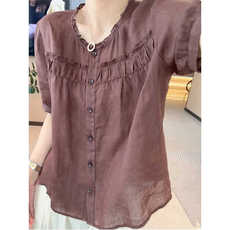 夏季新款设计感休闲宽松木耳边短袖衬衫女百搭显瘦薄款气质上衣潮