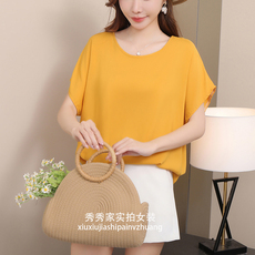 中年妈妈夏款t恤衫时尚套头女上衣加肥加大小衫丝滑凉快高档上衣