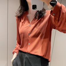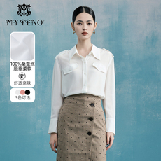 马天奴秋冬新款100%桑蚕丝纯色长袖衬衫简约气质衬衣高级时尚上衣