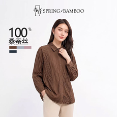 春竹早春新款压皱100%桑蚕丝长袖衬衫女高级感纯色百搭真丝上衣