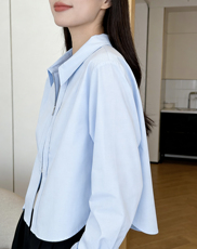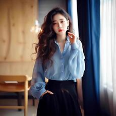 蓝色双拉链长袖衬衫女春季2026新款韩系穿搭宽松显瘦气质开衫外套