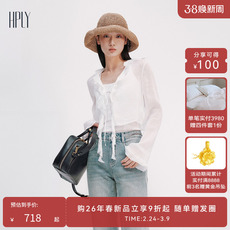 DPLAY2025年夏季新款白色衬衫女法式漂亮飘带泡泡袖上衣气质衬衣