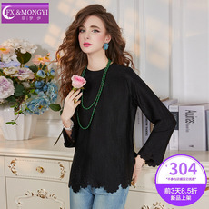 Eimismosol夏季新款白色衬衫女长款长袖蕾丝拼接醋酸宽松上衣
