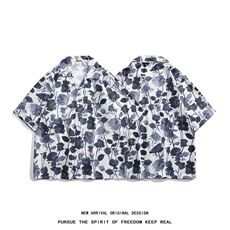 2025时尚港风古巴领碎花衬衫男女宽松夏威夷海边沙滩度假短袖衬衣