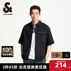 杰克琼斯夏季男装短袖衬衫印花百搭泡泡纱纯棉舒适时尚休闲上衣