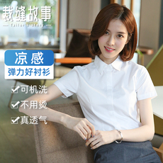 弹力白衬衫女短袖职业装2024夏季薄款竹纤维蓝色V领白衬衣工作服