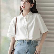 正品mm大码胖衬衫大女短袖20斤夏季肥加宽松纯棉工作0服职业白加