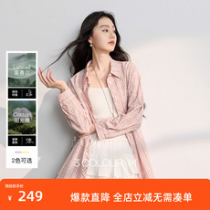 【莱赛尔】三彩2026春季新款格纹衬衫宽松中长衬衣开衫翻领复古M