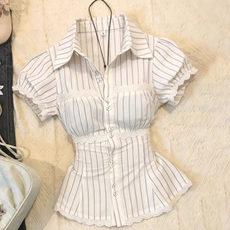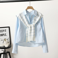 学院风翻领条纹衬衫女2026春季新款宽松显瘦百搭通勤休闲上衣