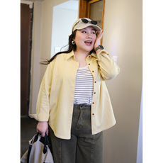 加肥大码女装简约翻领长袖收腰衬衫胖妹妹通勤风显瘦气质显瘦上衣