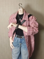 大码女装春季新宽松格纹长袖衬衫+叠穿刺绣马甲背心+牛仔裤三件套