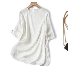 新中式香云纱真丝衬衫女七分袖碎花上衣桑蚕丝妈妈装洋气中式衬衫